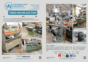 Timesaver, Strippit Punches, Miller Welders, Tooling, C-Clamps, Angle Grinders, Sanders, Electric Deburring and Beveling Machine, Table Saw, Drill Drivers, Arbor Press, Jet Disc Sander, Wales- Strippit Sheet Metal Fabricator, Drill Presses, Laboratory Oven, Paint Booth, Air Compressor, More......