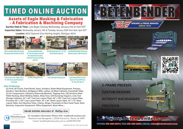 TIMED ONLINE AUCTION Assets of Eagle Masking & Fabrication- A Fabrication & Machining Company