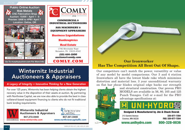 Public Online Auction Mak Metals CNC Fabrication Shop Auction: 10AM | April 1- 8 Preview: 8AM to 4PM | April 7 Location: Dallas, OR