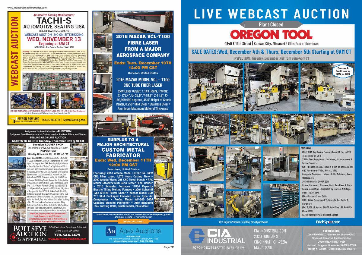 AUCTIONEERS: CIA Industrial LLC- License No. 2024-0001-02 Cincinnati Industrial Auctioneers, Inc. License No. 63-1983-10439 Jeffrey L. Luggen – License No. 57-1983-33789 Joseph M. Luggen – License No. 2010-0000-19