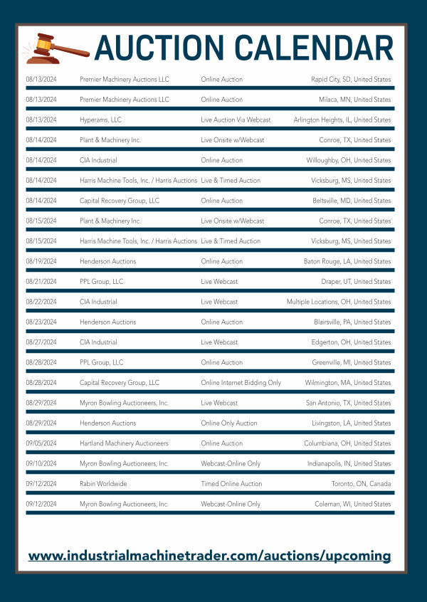 08 / 14 / 2024 Harris Machine Tools, Inc. / Harris Auctions Live & Timed Auction Vicksburg, MS, United States