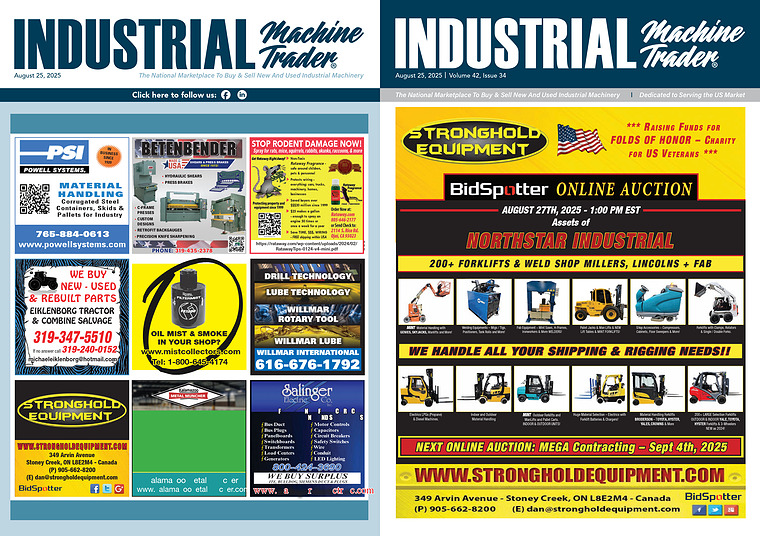 August 25, 2025 The National Marketplace To Buy & Sell New And Used Industrial Machinery August 25, 2025 | Volume 42, Issue 34