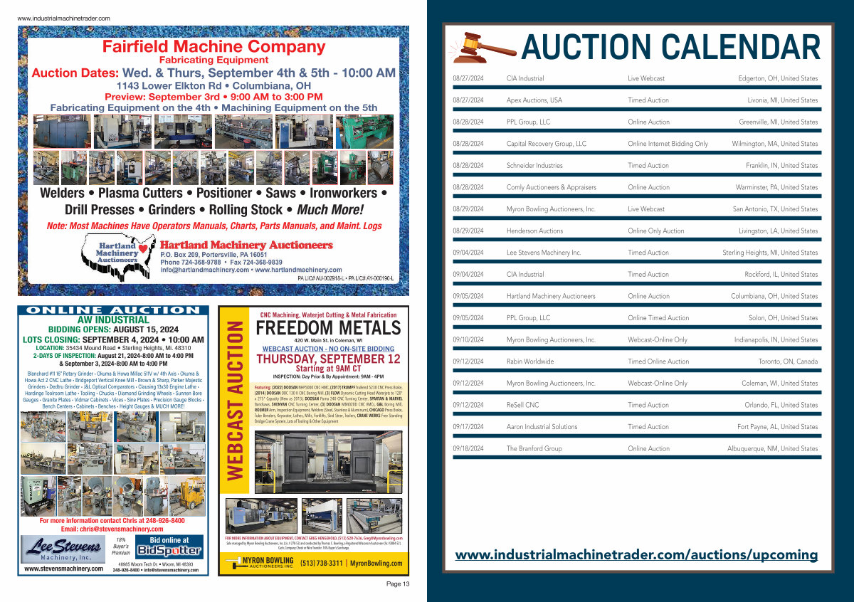 09 / 04 / 2024 Lee Stevens Machinery Inc. Timed Auction Sterling Heights, MI, United States