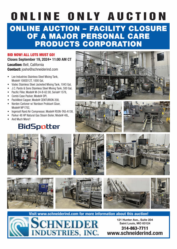 ONLINE AUCTION – FACILITY CLOSURE OF A MAJOR PERSONAL CARE PRODUCTS CORPORATION