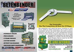 Our competitors can’ t match the power, versatility or value of any model by model comparisons. Our 3 and 4 station Ironworkers all have the lowest blade rake which minimizes distortion and material loss. 3 year unconditional warranty on flat bar shear blades original edge backs our strength and structural construction. Our proven PRO MODELS are available in 56, 80, 105 and 125 Punch Tonages. Call or e-mail for the PRO advantage specifications at: