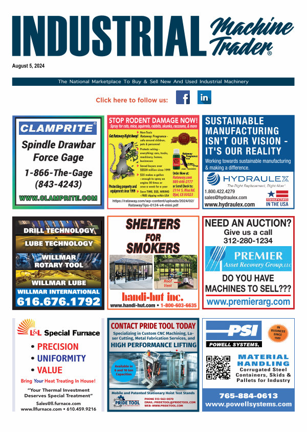 August 5, 2024 www. facebook. com / IndustrialMachineTrader www. linkedin. com / company / industrialmachinetrader