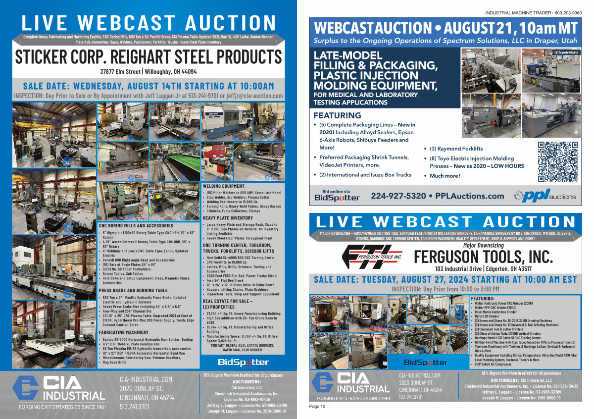 AUCTIONEERS: CIA Industrial, LLC Cincinnati Industrial Auctioneers, Inc.- License No. 63-1983-10439 Jeffrey L. Luggen – License No. 57-1983-33789 Joseph M. Luggen – License No. 2010-0000-19