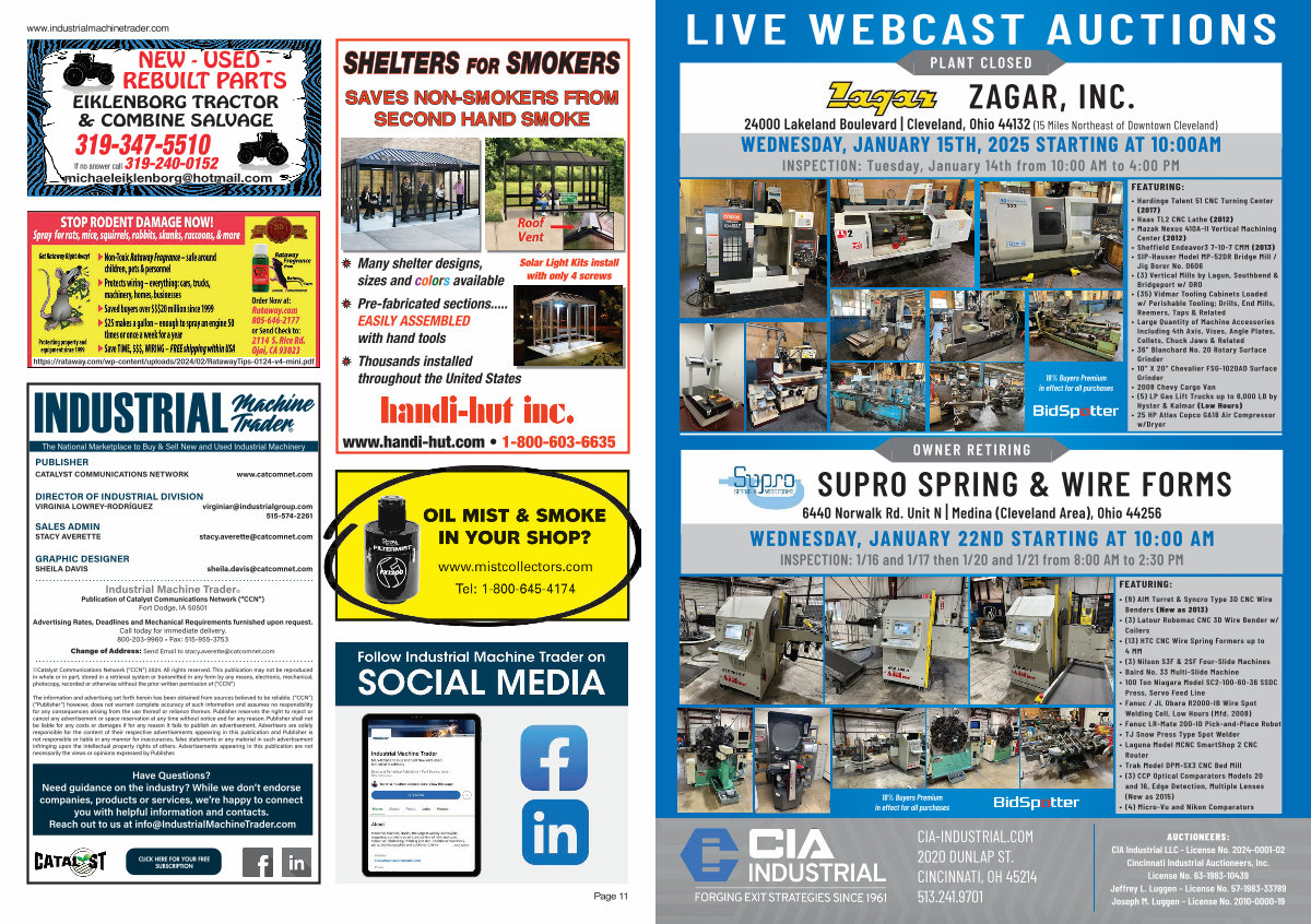 AUCTIONEERS: CIA Industrial LLC- License No. 2024-0001-02 Cincinnati Industrial Auctioneers, Inc. License No. 63-1983-10439 Jeffrey L. Luggen – License No. 57-1983-33789 Joseph M. Luggen – License No. 2010-0000-19