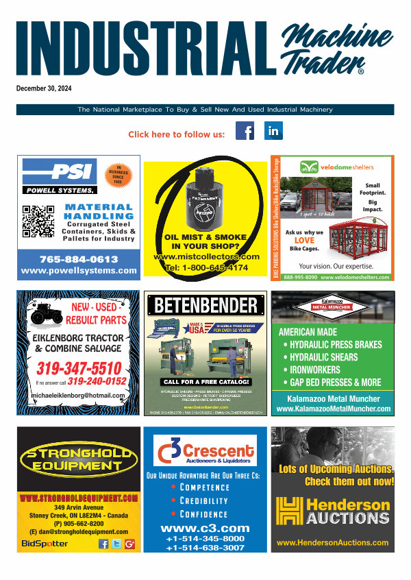 December 30, 2024 www. facebook. com / IndustrialMachineTrader www. linkedin. com / company / industrialmachinetrader