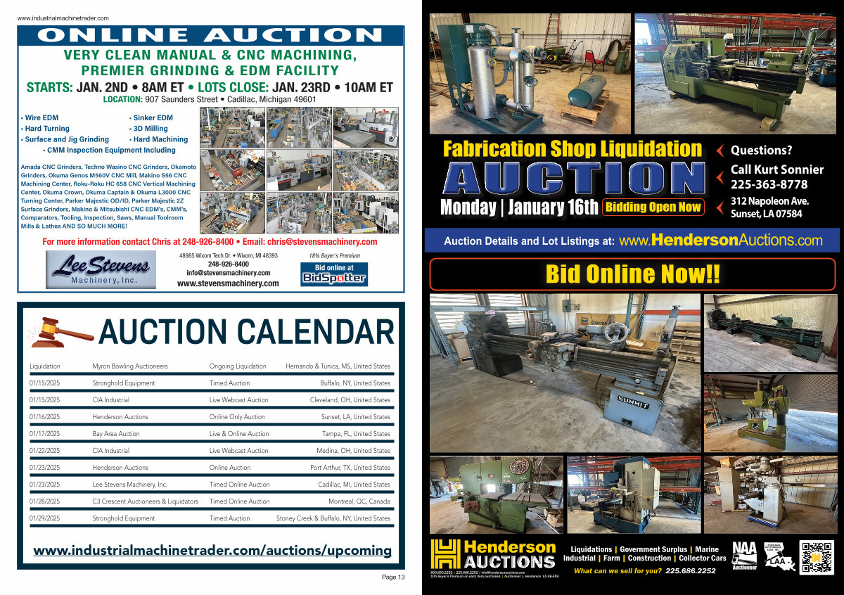 ONLINE AUCTION VERY CLEAN MANUAL & CNC MACHINING, PREMIER GRINDING & EDM FACILITY STARTS: JAN. 2ND • 8AM ET • LOTS CLOSE: JAN. 23RD • 10AM ET LOCATION: 907 Saunders Street • Cadillac, Michigan 49601