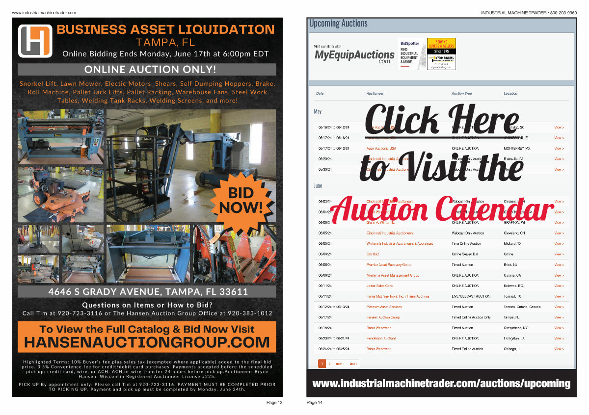 To View the Full Catalog & Bid Now Visit http:// HansenAuctionGroup. com