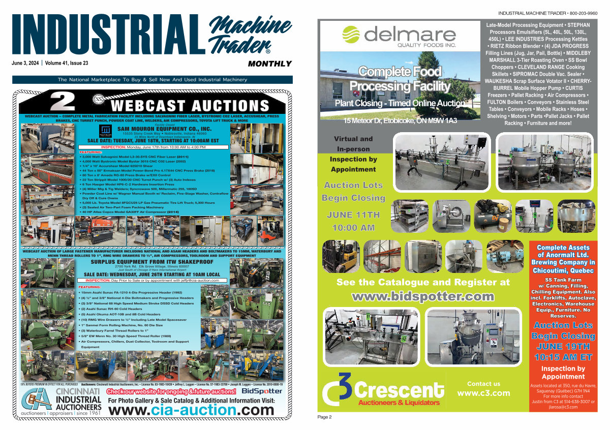 Auctioneers: Cincinnati Industrial Auctioneers, Inc. – License No. 63-1983-10439 • Jeffrey L. Luggen – License No. 57-1983-33789 • Joseph M. Luggen – License No. 2010-0000-19 https:// www. bidspotter. com / en-us / auction-catalogues / bscci