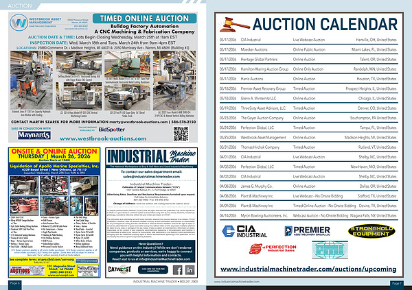 A CNC Machining & Fabrication Company AUCTION DATE & TIME: Lots Begin Closing Wednesday, March 25th at 11am EST INSPECTION DATE: Wed, March 18th and Tues, March 24th from 9am-4pm EST LOCATIONS: 25880 Commerce Dr. • Madison Heights, MI 48071 & 2050 Morrissey Ave • Warren, MI 48091( Building # 2)
