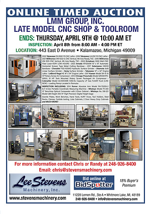 ONLINE TIMED AUCTION LMM GROUP, INC. LATE MODEL CNC SHOP & TOOLROOM ENDS: THURSDAY, APRIL 9TH @ 10:00 AM ET INSPECTION: April 8th from 8:00 AM- 4:00 PM ET LOCATION: 443 East D Avenue • Kalamazoo, Michigan 49009