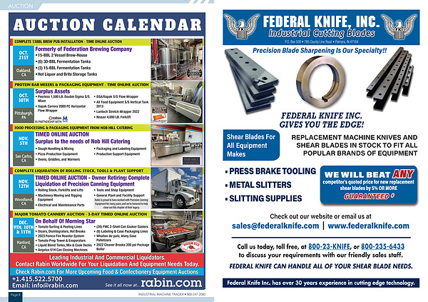 Check Rabin. com For More Upcoming Food & Confectionery Equipment Auctions 415-522-5700 info @ rabin. com