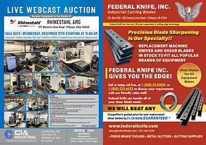 AUCTIONEERS: CIA Industrial LLC Cincinnati Industrial Auctioneers, Inc. Jeffrey L. Luggen • Joseph M. Luggen sales @ federalknife. com • 812-364-1448