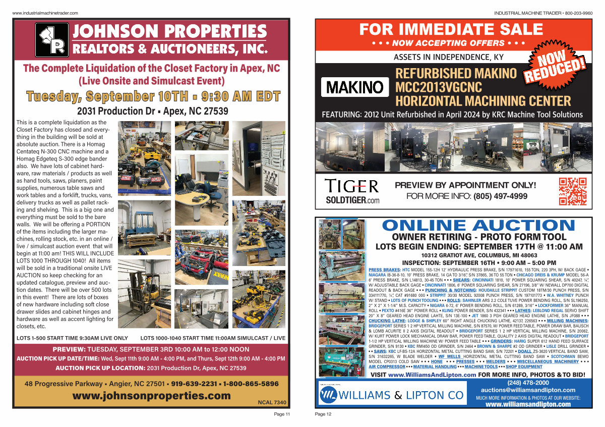 PREVIEW: TUESDAY, SEPTEMBER 3RD 10:00 AM to 12:00 NOON AUCTION PICK UP DATE / TIME: Wed, Sept 11th 9:00 AM- 4:00 PM, and Thurs, Sept 12th 9:00 AM- 4:00 PM AUCTION PICK UP LOCATION: 2031 Production Dr, Apex, NC 27539