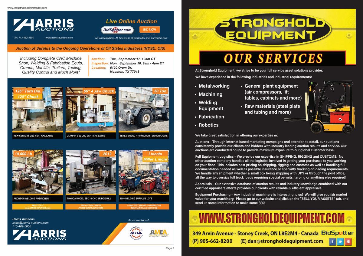 Including Complete CNC Machine Shop, Welding & Fabrication Equip, Cranes, Manlifts, Trailers, Tooling, Quality Control and Much More!