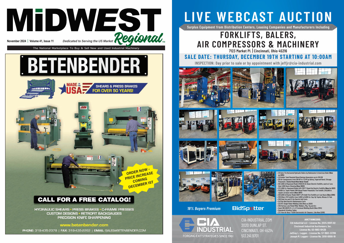 AUCTIONEERS: CIA Industrial LLC- License No. 2024-0001-02 Cincinnati Industrial Auctioneers, Inc. License No. 63-1983-10439 Jeffrey L. Luggen – License No. 57-1983-33789 Joseph M. Luggen – License No. 2010-0000-19