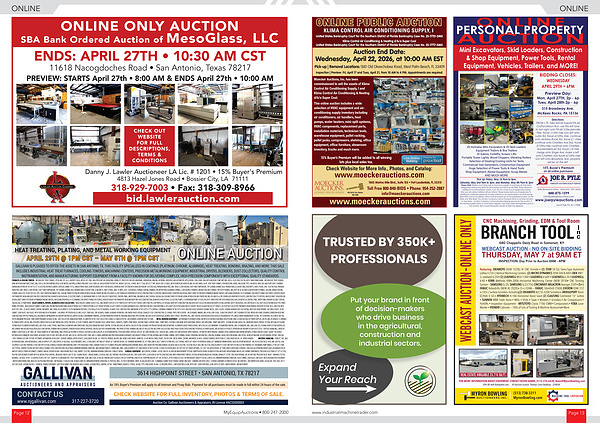TREATING, PLATING, AND METAL WORKING EQUIPMENT APRIL 29TH @ 1PM CST – MAY 5TH @ 1PM CST