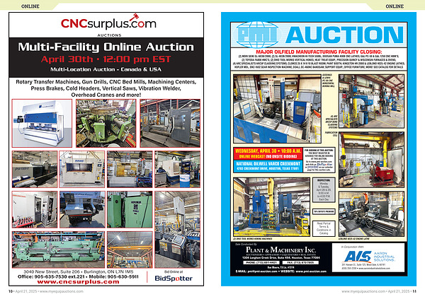 MAJOR OILFIELD MANUFACTURING FACILITY CLOSING:( 2) MORI SEIKI SL-603B / 2000;( 2) SL-403B / 2000; HWACHEON HI-TECH 550BL; DOOSAN PUMA 400B CNC LATHES; G & L PC-50 & G & L 1250 CNC HBM’ S;( 2) TOYODA FA800 HMC’ S;( 2) OHIO TOOL WORKS VERTICAL HONES; HEAT TREAT EQUIP.; PRECISION QUINCY & WISCONSIN FURNACES & OVENS;( 4) ARC SPECIALISTS ARC5P CLADDING SYSTEMS; CLEMCO 25 X 14 X 10 BLAST ROOM; PAINT BOOTH; KINGSTON HR-2000 & LEBLOND 4025-42 ENGINE LATHES; HOFLER MDL. EMZ-1602 GEAR INSPECTION MACHINE; DOALL DC-460NC BANDSAW; SUPPORT EQUIP.; OFFICE FURNITURE; MORE! SEE CATALOG FOR DETAILS