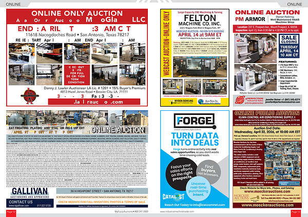 GALLIVAN IS PLEASED TO OFFER THE ASSETS IN SAN ANTONIO, TX. THIS FACILITY SPECIALIZED IN COATINGS( PLATINUM, CHROME, ALUMINIDE), HEAT TREATING, BONDING, BRAZING, AND MORE. THIS SALE INCLUDES INDUSTRIAL HEAT TREAT FURNACES, COOLING TOWERS, MACHINING CENTERS, PRECISION METALWORKING EQUIPMENT, INDUSTRIAL DRYERS, BLENDERS, DUST COLLECTORS, QUALITY CONTROL INSTRUMENTATION, AND MANUFACTURING SUPPORT EQUIPMENT FROM A FACILITY KNOWN FOR DELIVERING COMPLEX, HIGH-PRECISION COMPONENTS WITH EXCEPTIONAL QUALITY STANDARDS.