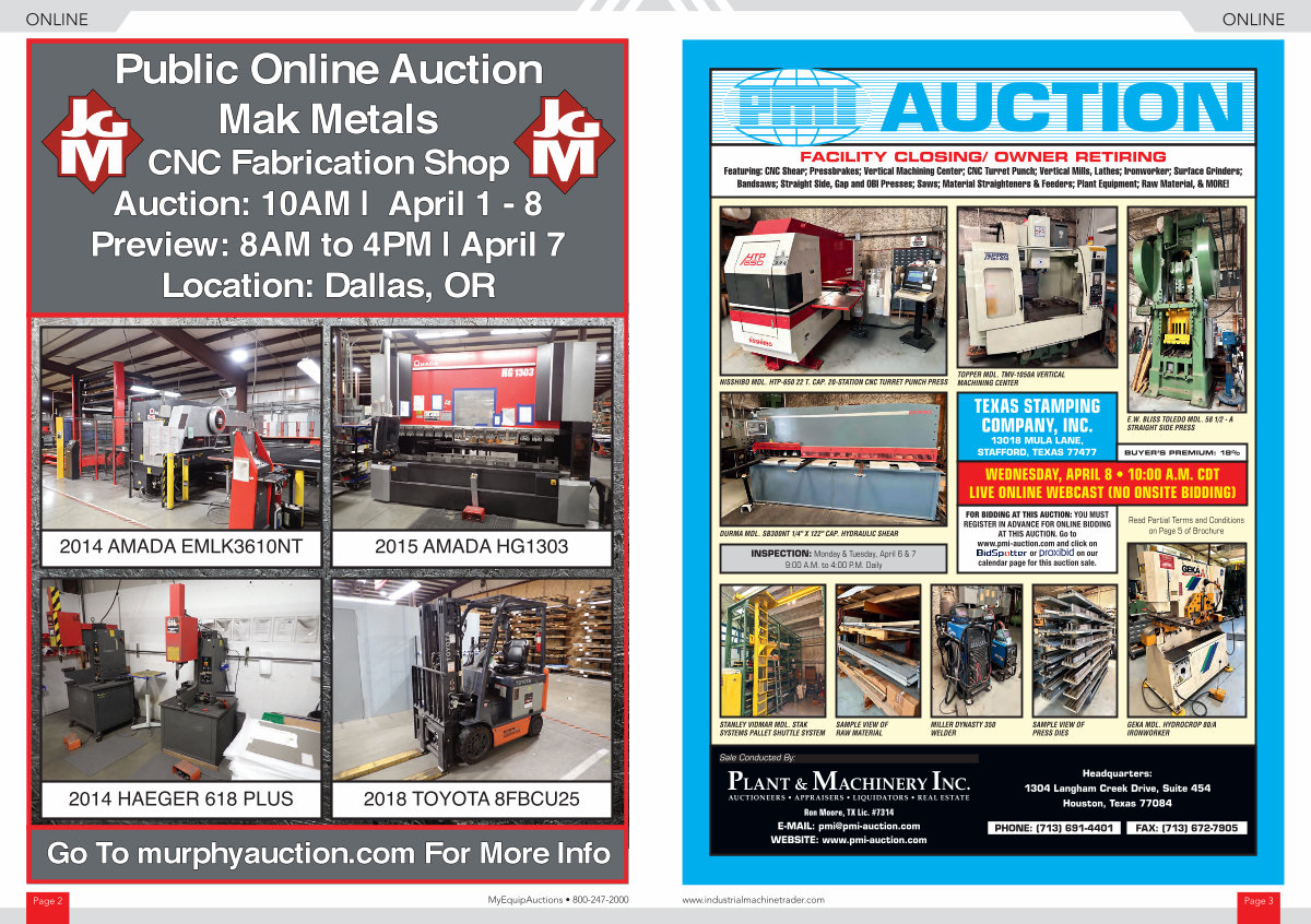 Public Online Auction Mak Metals CNC Fabrication Shop Auction: 10AM | April 1- 8 Preview: 8AM to 4PM | April 7 Location: Dallas, OR