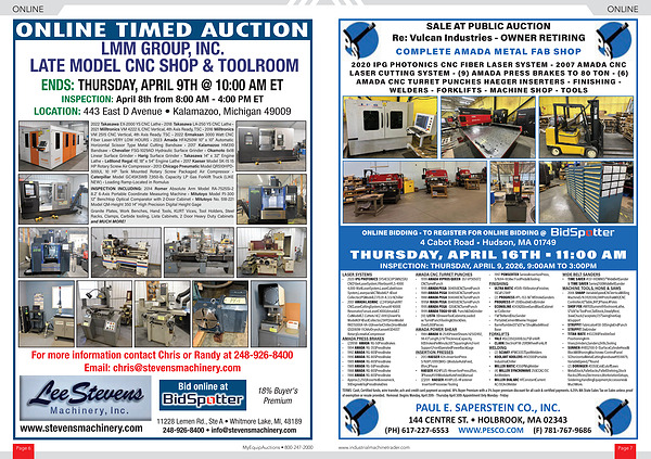ONLINE TIMED AUCTION LMM GROUP, INC. LATE MODEL CNC SHOP & TOOLROOM ENDS: THURSDAY, APRIL 9TH @ 10:00 AM ET INSPECTION: April 8th from 8:00 AM- 4:00 PM ET LOCATION: 443 East D Avenue • Kalamazoo, Michigan 49009