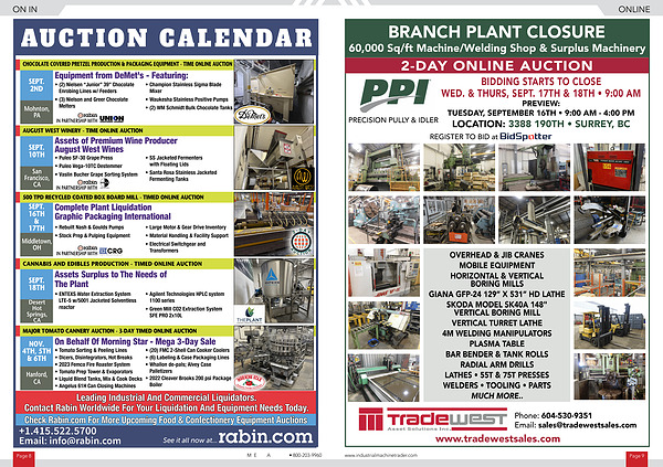 BIDDING STARTS TO CLOSE WED. & THURS, SEPT. 17TH & 18TH • 9:00 AM PREVIEW: TUESDAY, SEPTEMBER 16TH • 9:00 AM- 4:00 PM