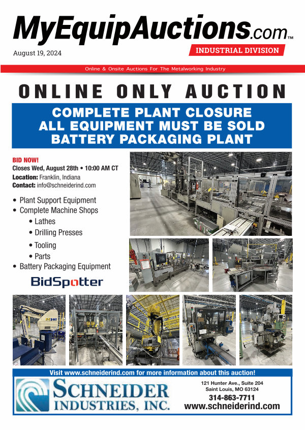 BID NOW! Closes Wed, August 28th • 10:00 AM CT Location: Franklin, Indiana Contact: info @ schneiderind. com