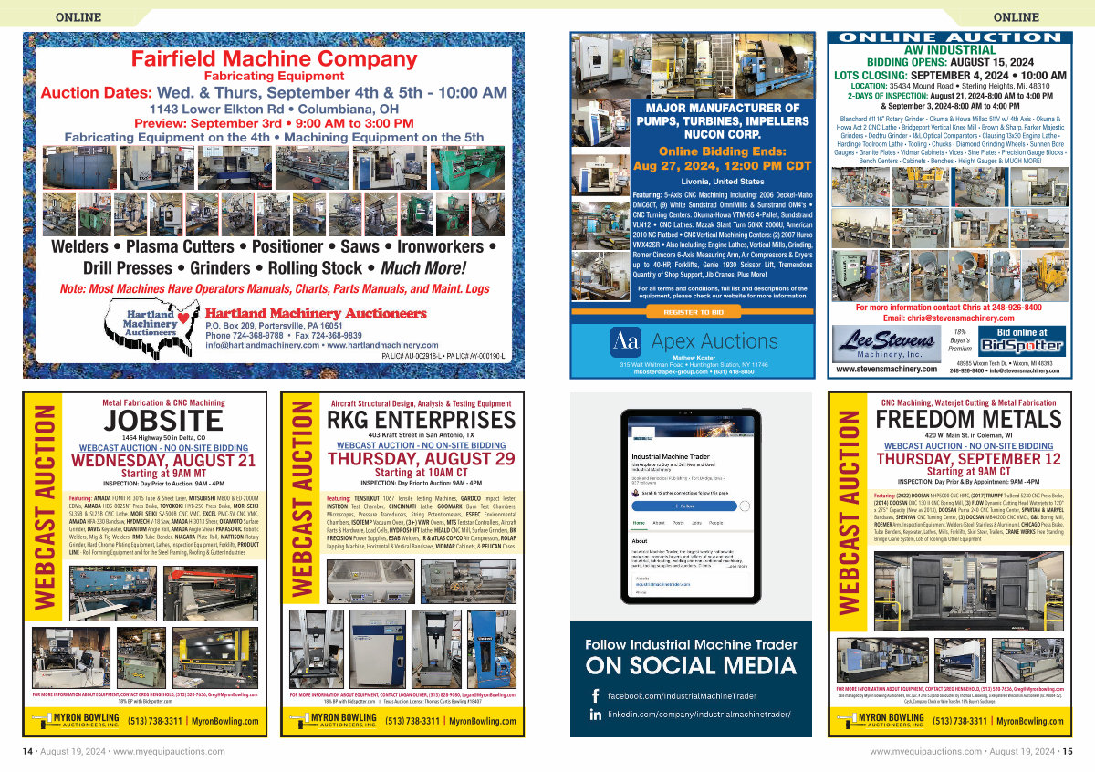 Fairfield Machine Company Fabricating Equipment Auction Dates: Wed. & Thurs, September 4th & 5th- 10:00 AM 1143 Lower Elkton Rd • Columbiana, OH Preview: September 3rd • 9:00 AM to 3:00 PM Fabricating Equipment on the 4th • Machining Equipment on the 5th