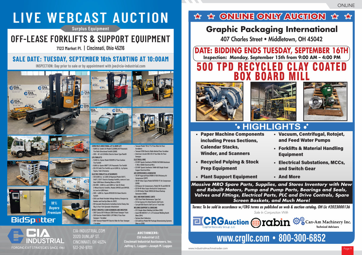 DATE: BIDDING ENDS TUESDAY, SEPTEMBER 16TH Inspection: Monday, September 15th from 9:00 AM – 4:00 PM 500 TPD RECYCLED CLAY COATED BOX BOARD MILL