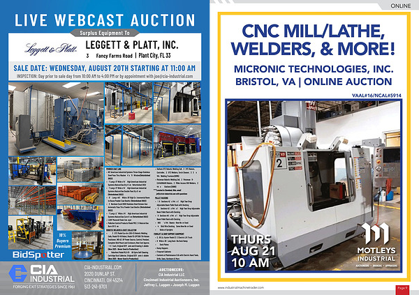 SALE DATE: WEDNESDAY, AUGUST 20TH STARTING AT 11:00 AM INSPECTION: Day prior to sale day from 10:00 AM to 4:00 PM or by appointment with joe @ cia-industrial. com