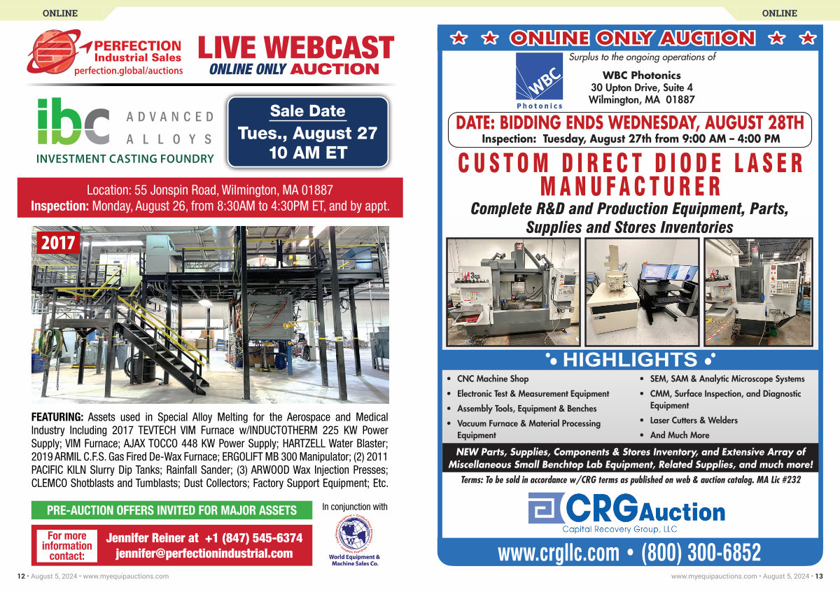 DATE: BIDDING ENDS WEDNESDAY, AUGUST 28TH Inspection: Tuesday, August 27th from 9:00 AM – 4:00 PM CUSTOM DIRECT DIODE LASER MANUFACTURER Complete R & D and Production Equipment, Parts, Supplies and Stores Inventories
