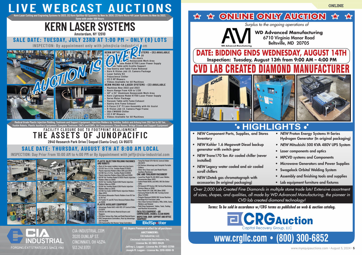 AUCTIONEERS: CIA Industrial, LLC Cincinnati Industrial Auctioneers, Inc. License No. 63-1983-10439 Jeffrey L. Luggen – License No. 57-1983-33789 Joseph M. Luggen – License No. 2010-0000-19