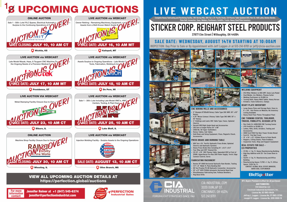 AUCTIONEERS: CIA Industrial, LLC Cincinnati Industrial Auctioneers, Inc. License No. 63-1983-10439 Jeffrey L. Luggen – License No. 57-1983-33789 www. myequipauctions. com • August 5, 2024 • 7 Joseph M. Luggen – License No. 2010-0000-19