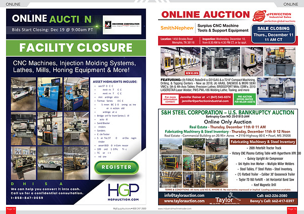 Online Only Auction Real Estate- Thursday, December 11th @ 11 AM Fabricating Machinery & Steel Inventory- Thursday, December 11th @ 12 Noon