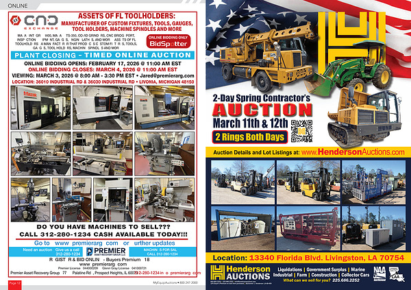 ONLINE BIDDING OPENS: FEBRUARY 17, 2026 @ 11:00 AM EST ONLINE BIDDING CLOSES: MARCH 4, 2026 @ 11:00 AM EST VIEWING: MARCH 3, 2026 @ 8:00 AM- 3:30 PM EST • Jared @ premierarg. com