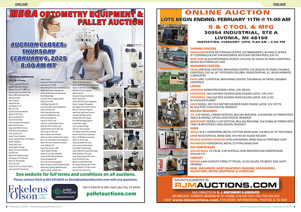 S & C TOOL & MFG 30954 INDUSTRIAL, STE A LIVONIA, MI 48150 INSPECTION: FEBRUARY 10TH, 9:00 AM – 5:00 PM