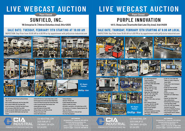 AUCTIONEERS: CIA Industrial LLC- License No. 2024-0001-02 Cincinnati Industrial Auctioneers, Inc. License No. 63-1983-10439 Jeffrey L. Luggen – License No. 57-1983-33789 www. myequipauctions Joseph M. Luggen. com •– January License No 13. 2010-0000-19, 2025 • 11