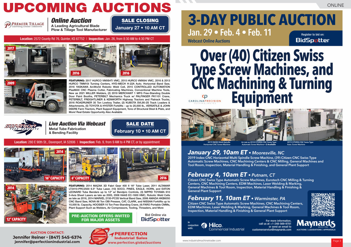 AUCTION CONTACT: Jennifer Reiner •( 847) 545-6374 jennifer @ perfectionindustrial. com www. perfection. global / auctions