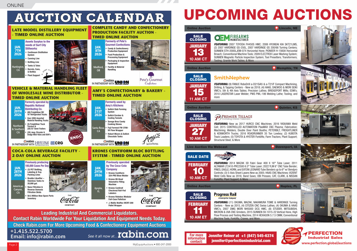 Jennifer Reiner at + 1( 847) 545-6374 jennifer @ perfectionindustrial. com www. perfection. global / auctions