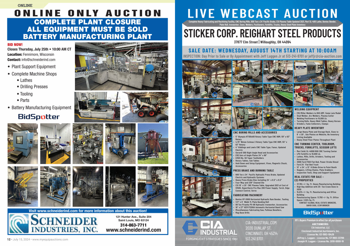 BID NOW! Closes Thursday, July 25th • 10:00 AM CT Location: Fennimore, Wisconsin Contact: info @ schneiderind. com