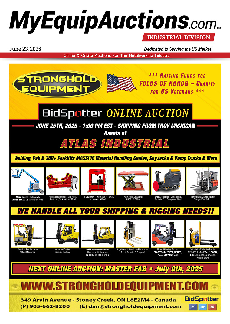 NEXT ONLINE AUCTION: MASTER FAB • July 9th, 2025 www. strongholdequipment. com 905-662-8200 dan @ strongholdequipment. com