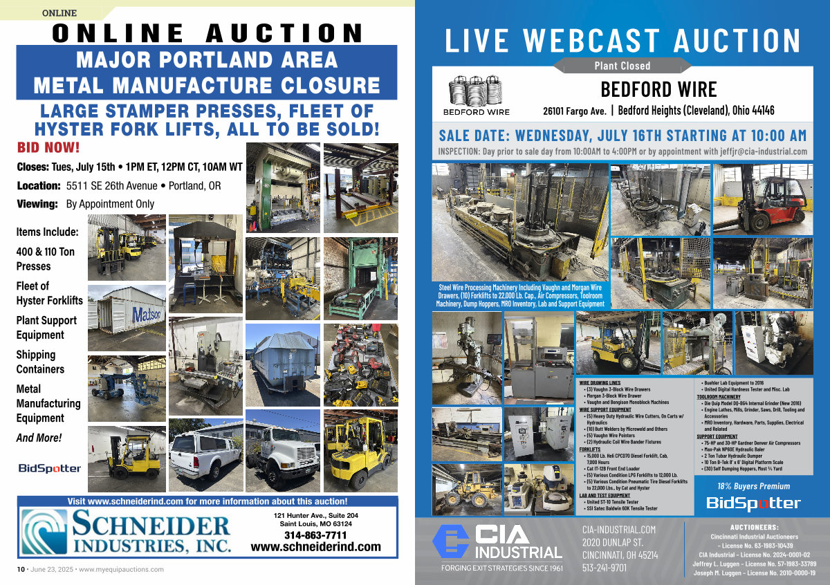 18 % Buyers Premium AUCTIONEERS: Cincinnati Industrial Auctioneers – License No. 63-1983-10439 CIA Industrial – License No. 2024-0001-02 Jeffrey L. Luggen – License No. 57-1983-33789 Joseph M. Luggen – License No. 2010-0000-19