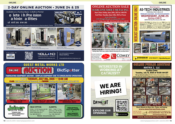 MARCLINE SHEET METAL INC. Start Date: Friday, June 20th, 2025 at 3:00 PM End Date: Tuesday, June 24th, 2025 at Noon Assets Located at: 2339-B Edgely Road • Levittown, PA, 19057 Preview: Friday, June 20th, 2025 from 9:00 AM to 4:00 PM