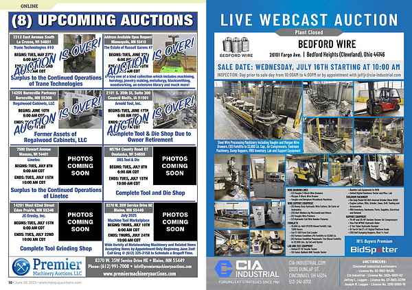 18 % Buyers Premium AUCTIONEERS: Cincinnati Industrial Auctioneers – License No. 63-1983-10439 CIA Industrial – License No. 2024-0001-02 Jeffrey L. Luggen – License No. 57-1983-33789 Joseph M. Luggen – License No. 2010-0000-19