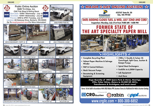 DATE: BIDDING CLOSES TUES. & WED, JULY 22ND AND 23RD Inspection: Monday, July 21st from 9:00 AM – 4:00 PM FORMER STATE OF THE ART SPECIALTY PAPER MILL