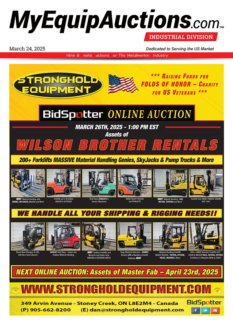 NEXT ONLINE AUCTION: Assets of Master Fab – April 23rd, 2025