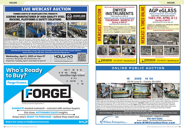 PREVIEW: April 9th and April 14th 1:00pm – 4:00pm CHECK OUT / REMOVAL: April 17th & 18th – 8:00am to 3:00pm; Large machines that require riggers must be removed by April 25th by 1:00pm Visit Our Website for More Details and Register to Bid BJWilson. placebids. net